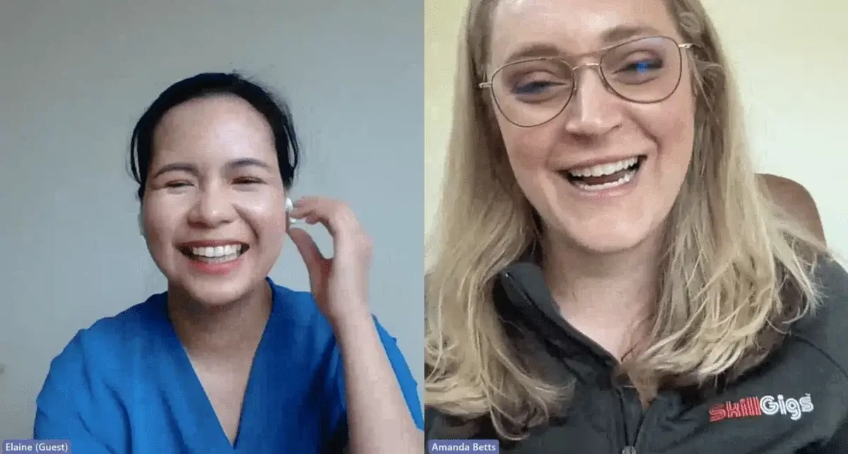 Last week, SkillGigs’ VP of Marketing Amanda Betts, sat down with one of our talented foreign-trained travel nurses, Elaine. Amanda reached out to Elaine to have a recorded conversation about her life as an international travel nurse, what it’s like working with SkillGigs, as well as advice for others considering to be a SkillGigs travel nurse. Below is the full recording followed by the transcript. The conversation is fun and light-hearted and an easy listen on your daily commute! Elaine’s advice and commentary are great for all travel nurses, no matter where you are located.