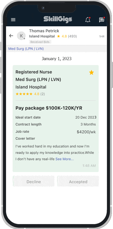 I’m currently a Travel Nurse Employed by SkillGigs. I was diagnosed with Covid 19 on October 26, 2020. I just wanted to inform you of the commitment, compassion, and Love shown to me from my [healthcare relationship manager] Jennifer during this stressful time ...