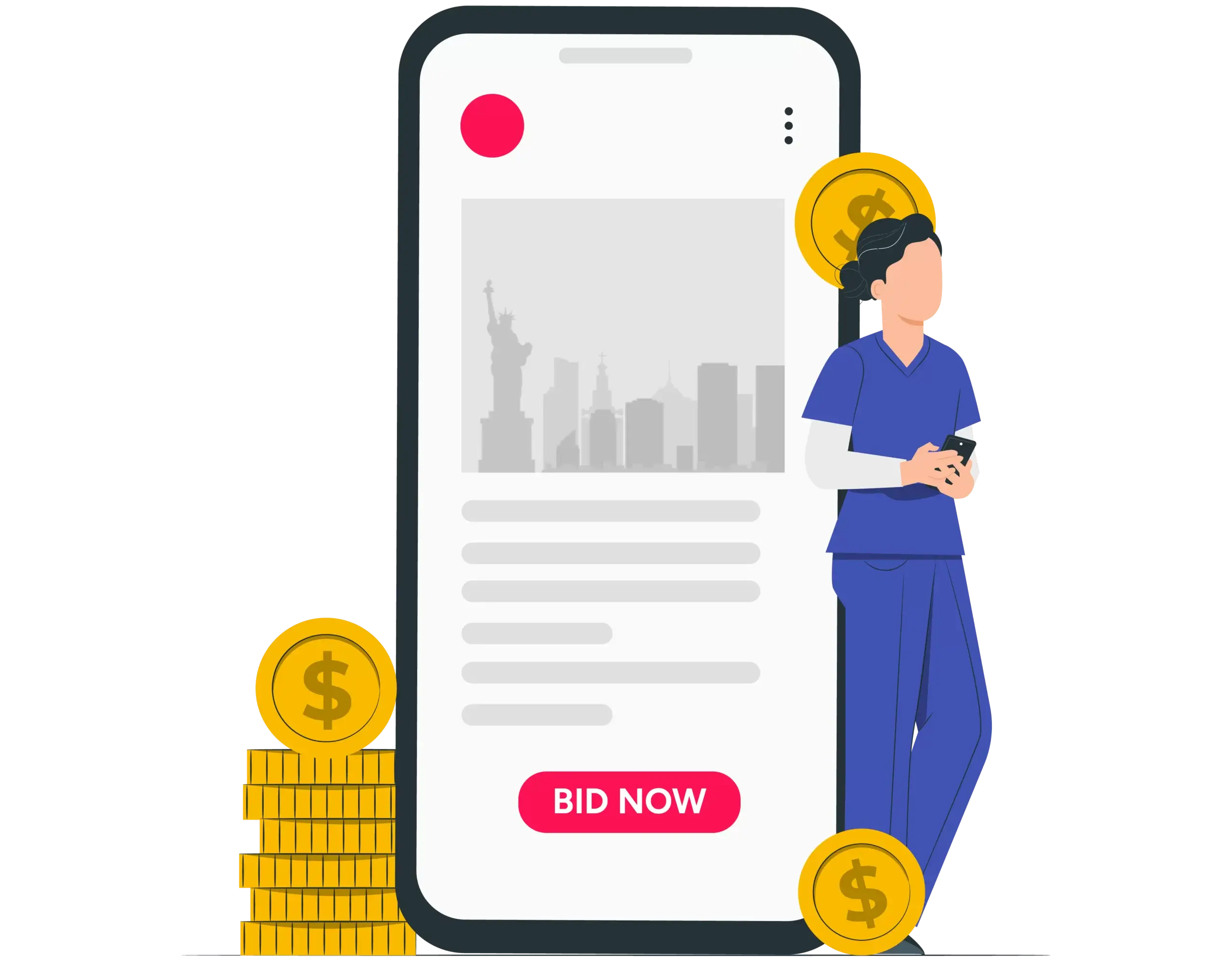 SkillGigs presents an exhilarating two-way bidding system, a dynamic battlefield where you wield the power. Picture yourself in the heart of a bustling marketplace, where Travel Nurse gigs and talent collide in a spectacle of opportunity. Here, you don’t just search for travel nurse jobs and gigs; they vie for your attention. Employers don’t merely await your application; they actively bid for your prowess. This isn’t just a platform; it’s a coliseum where your skills are the main event.