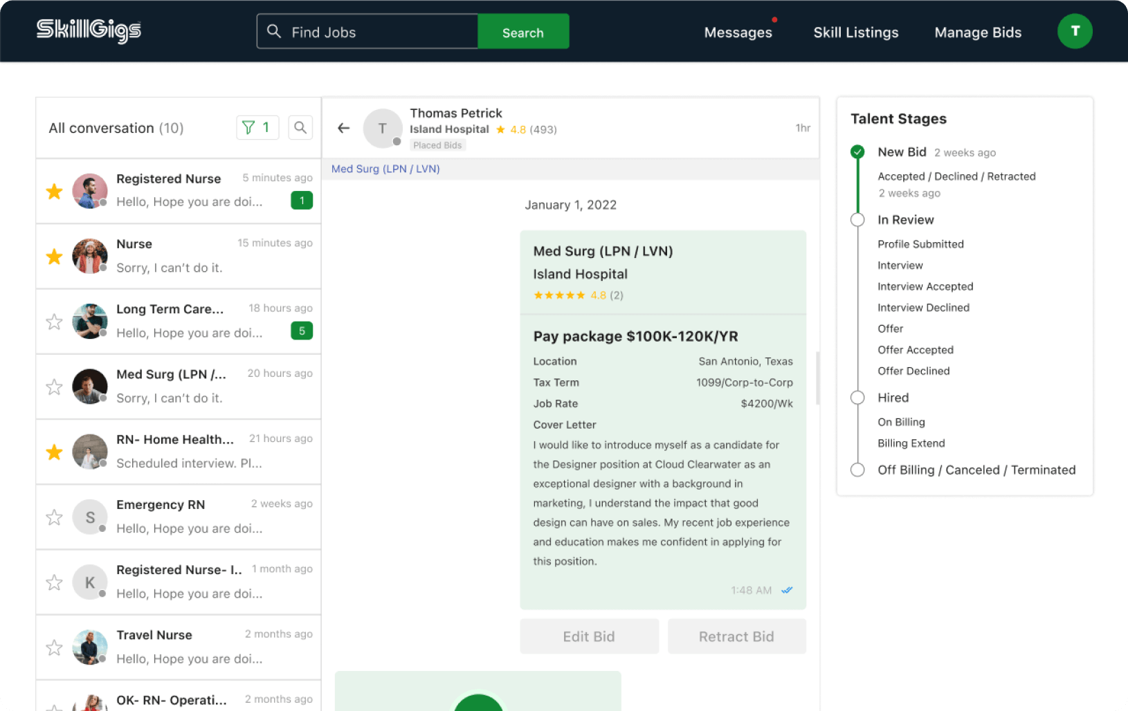 I’m currently a Travel Nurse Employed by SkillGigs. I was diagnosed with Covid 19 on October 26, 2020. I just wanted to inform you of the commitment, compassion, and Love shown to me from my [healthcare relationship manager] Jennifer during this stressful time ...