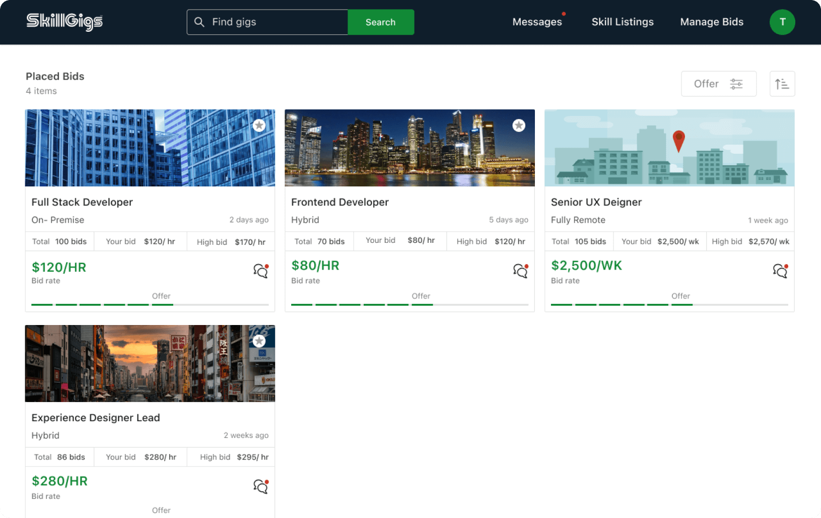 Experience the disruption in talent acquisition with SkillGigs. Our bidding-based hiring environment directly connects you with engaged, active talent, precisely matching your job requirements. Sign up, have a demo, and begin posting your jobs for free. Get started!