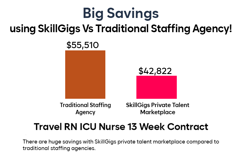 The acute care facility’s partnership with SkillGigs revolutionized its approach to staffing travel and contract nursing positions. By leveraging a private talent marketplace, the hospital not only realized significant financial savings but also improved its operational efficiency and regained control over its staffing processes. This case study demonstrates the tangible benefits of adopting innovative staffing solutions and serves as a compelling argument for other hospital executives to consider SkillGigs for their staffing needs.